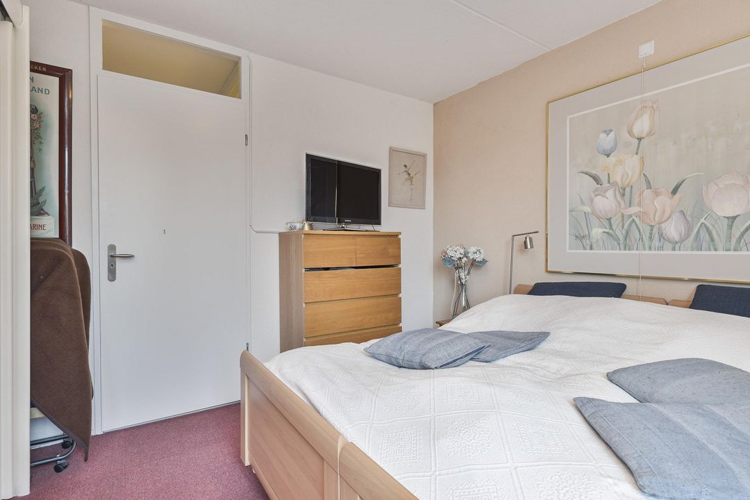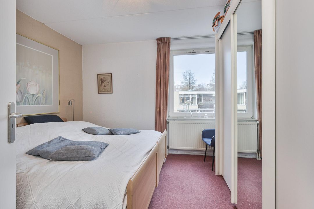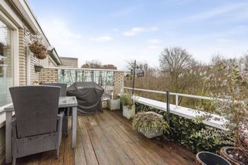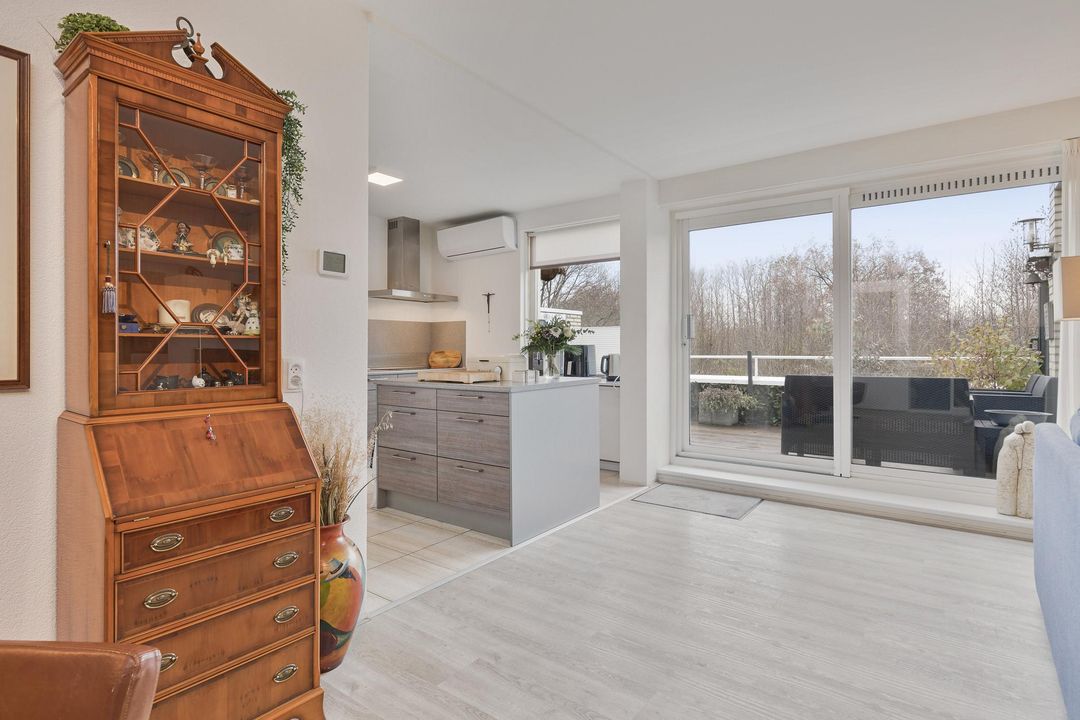 Vanuit de woonkamer loop je via de schuifpui het grote balkon op. Het ligt op het zonnige zuidoosten en vanwege de ligging aan de bovenste verdieping van het kleinschalige complex, kun je hier zo goed als de hele dag van de zon genieten.